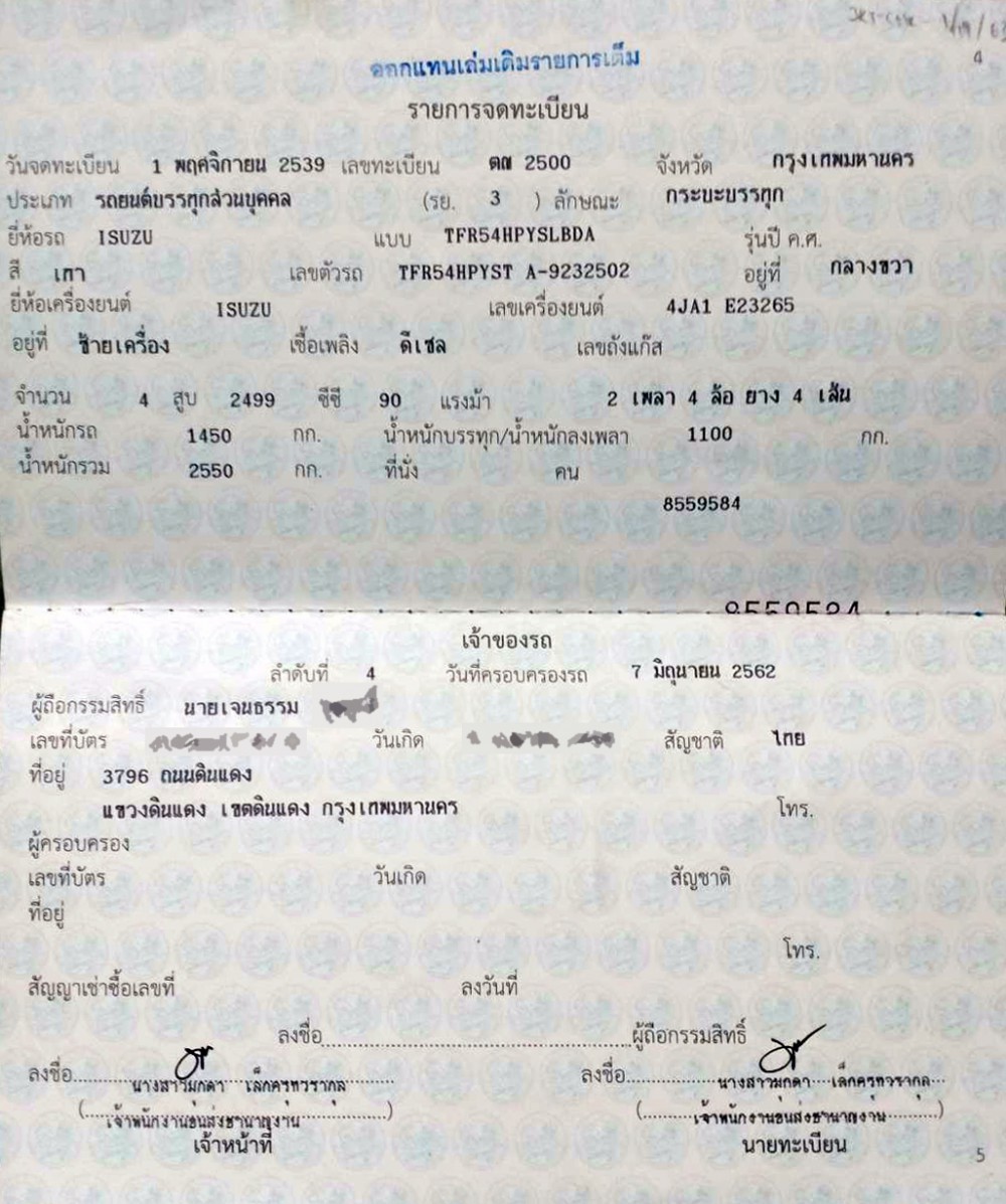 ทะเบียน ตณ 2500 กรุงเทพมหานคร จดทะเบียน 1 พฤศจิกายน 2539 เข็มไมล์วิ่งมา 249,2xx กม. เครื่องเดิม เครื่องยนต์ 2500 เครื่องดีมาก วิ่งได้ถึง 120 กม/ชม. สภาพเดิมๆ ไม่เคยชน ไม่จมน้ำ กระจกไฟฟ้า พวงมาลัยพาวเวอร์ ดูรถได้ที่โบสถ์แม่พระฟาติมา เขตดินแดง