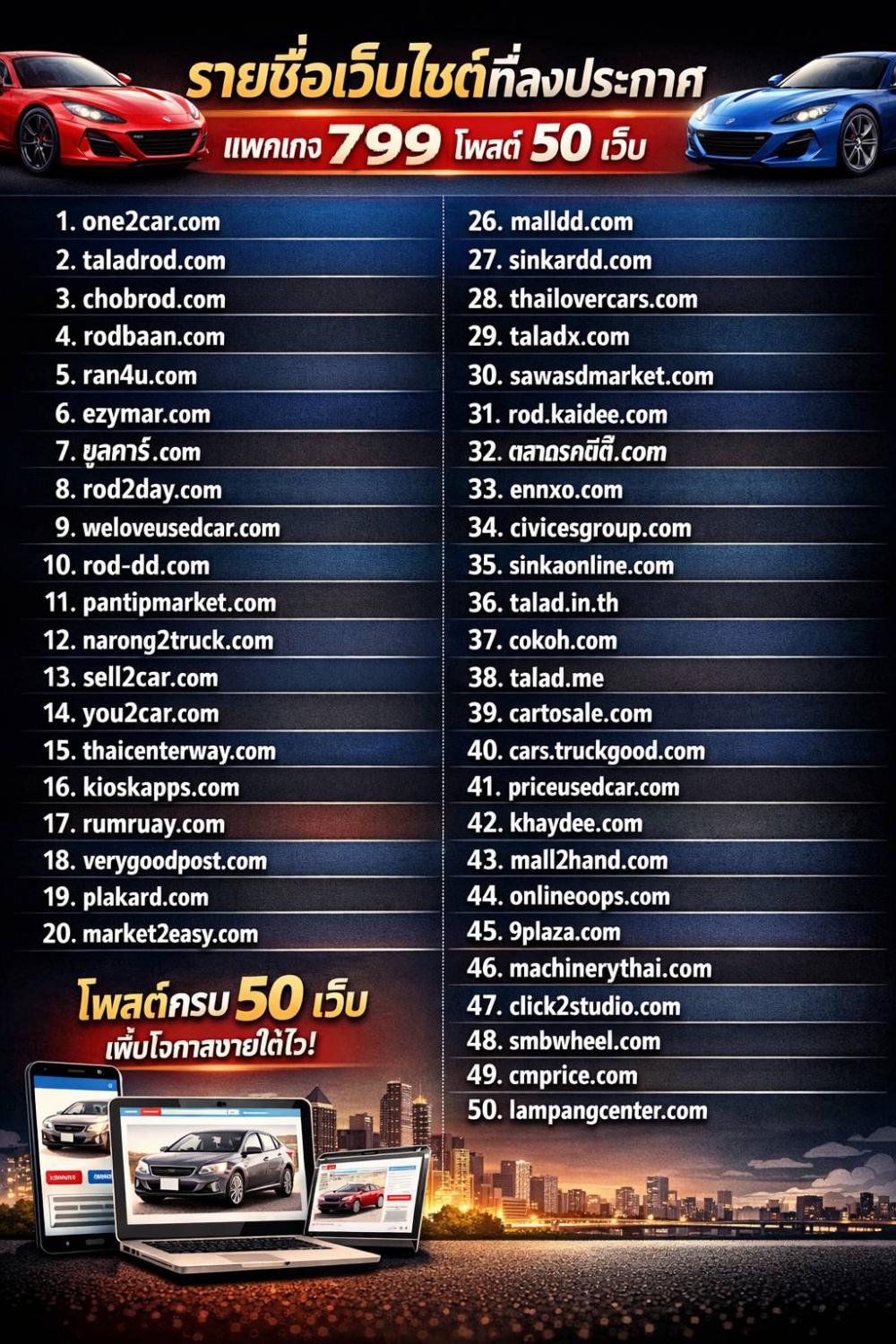 • โพสต์ 50 เว็บรถชั้นนำ เพิ่มโอกาสขายมากขึ้น