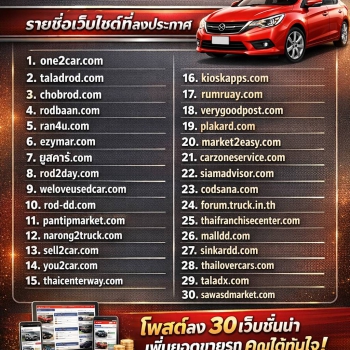 • โพสต์ 30 เว็บรถชั้นนำ เช่น one2car, chobrod, taladrod